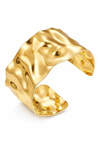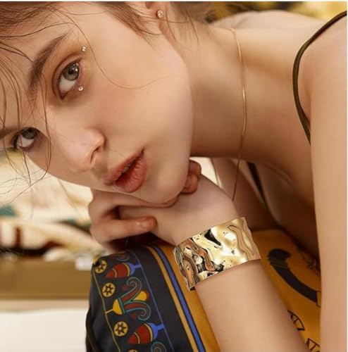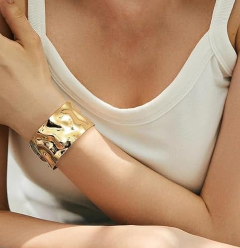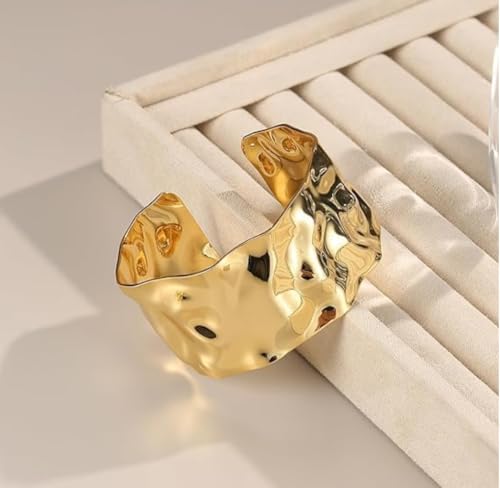 Generic - Hagat Banat Store Gold Plated Stainless Steel Trendy Cuff Bracelets for Women Irregular Simple Hammered Cuff Wrap Bracelets (Gold)