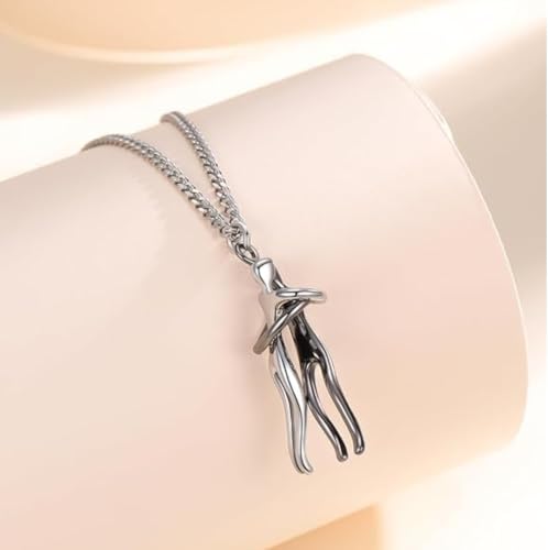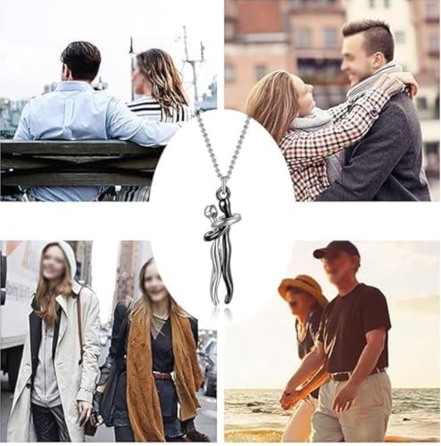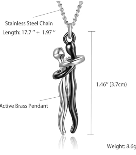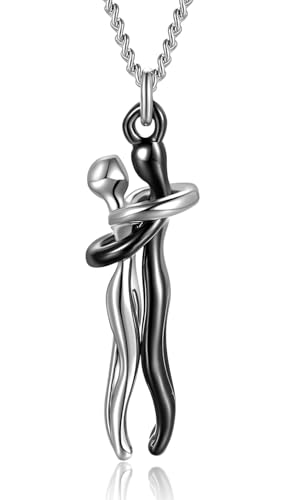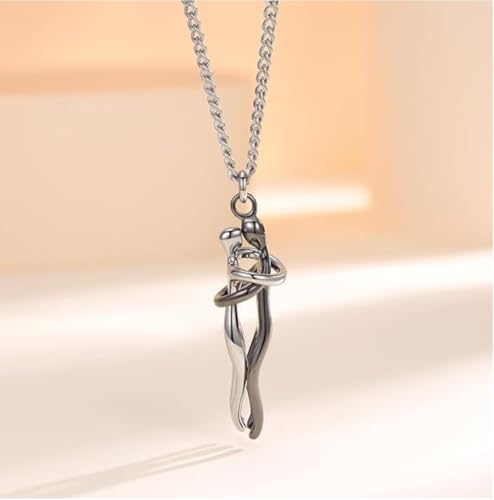 Generic - عقد عناق من متجر حاجات بانات، للازواج له ولها في عيد الحب، سلسلة عناق عصرية للجنسين من الستانلس ستيل، قلادة عناق، مجوهرات (اسود - فضي)