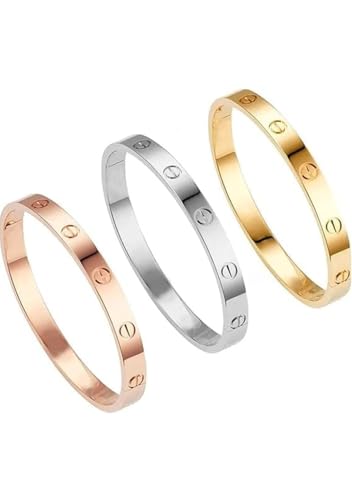 Generic - Hagat Banat Store (Set of 3) 18K Gold Plated Stainless Steel Bangle bracelets for Women, Friendship and Love Bracelets, Stainless Steel Bracelet, Christmas Valentine's Day Birthday for Women