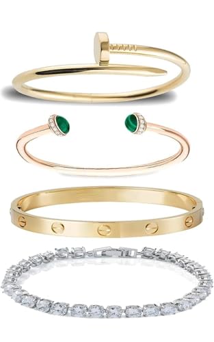 Generic - إسورة من حاجات بنات للنساء، مصنوعة من الستانلس ستيل، بلون ذهبي وتصميم تنس، مقاس 17 سنتيمتر