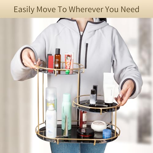Hahamiya - Makeup Organizer Shelf, 3 Tier Cosmetic Storage Basket with Removable Tray, Vanity Organizer Rack Bathroom Organizer Cosmetic Storage Shelf for Dresser & Countertop (Black)