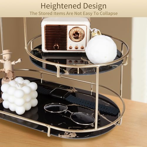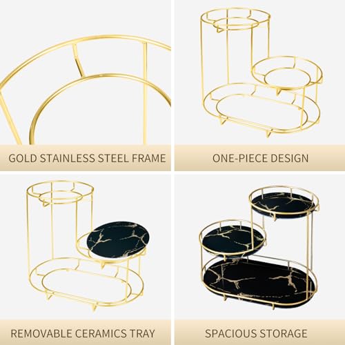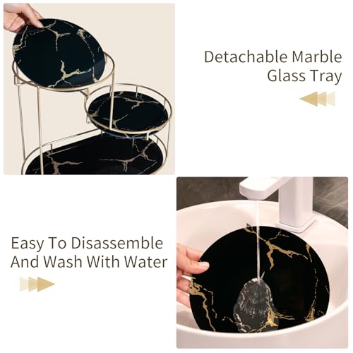 - 🎀【Classy Look】Gold wire basket with removable marbling glass tray, this cosmetic storage rack can easily give you a splash of luxury. Clean stains, just wash with water, durable, more waterproof, suitable for use anywhere.