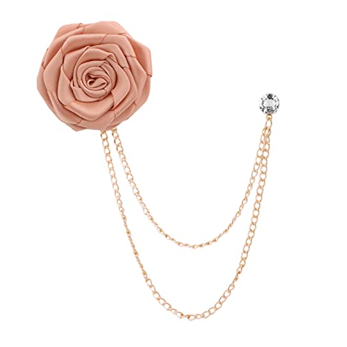 haiaxx - Bridegroom Wedding Brooches Cloth Art Hand-made Rose Flower Brooch Lapel Pin Badge Tassel Chain Men Suit Accessories Flower Lapel Pin Light Blue
