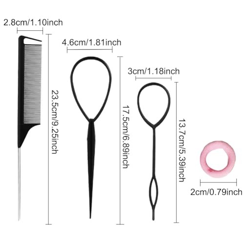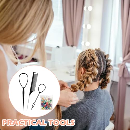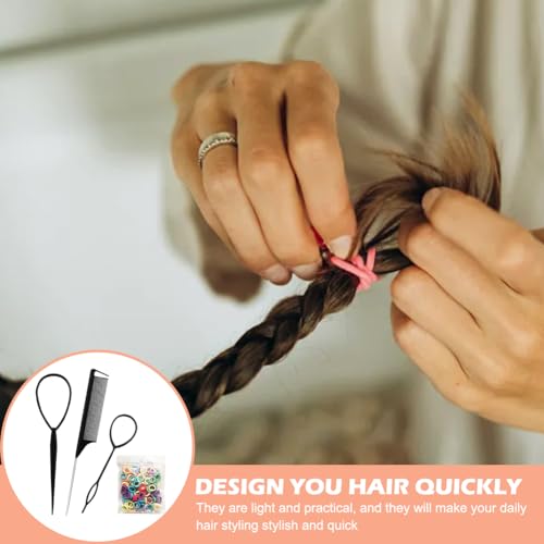 - 【WHAT YOU WILLL GET】You will receive 2 hair loop tools, 1 trail comb and 50 elastic hair ties. The hair braiding tool are easy to use. After tying the ponytail, insert the hair loop tool into the ponytail, pass the ponytail through the tool loop, and finally pull the tool tip down slightly.