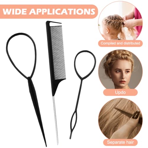 - 【DURABLE MATERIAL】The hair loop tools are made of flexible plastic, which is tough and durable, easy to rebound. The tail comb is made of steel and plastic material, which is resistant to static electricity and high temperature.