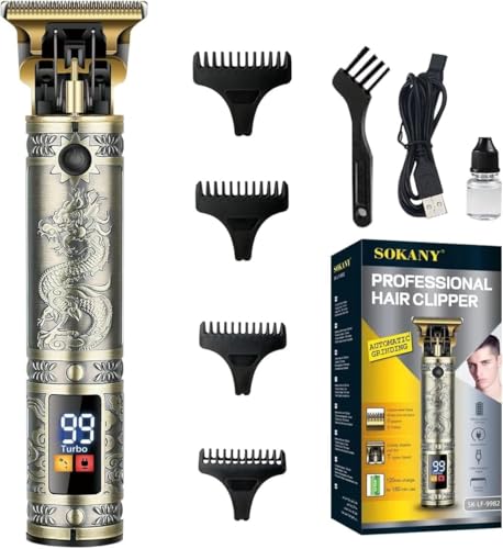 SOKANY - ماكينة حلاقة وتشذيب الشعر، شفرات من الستانلس ستيل مع 4 امشاط، ماكينة حلاقة شعر مع شاشة LCD للرجال، وقت تشغيل 120 دقيقة، حلاقة دقيقة، جودة صالونات التجميل، SK-LF-9982