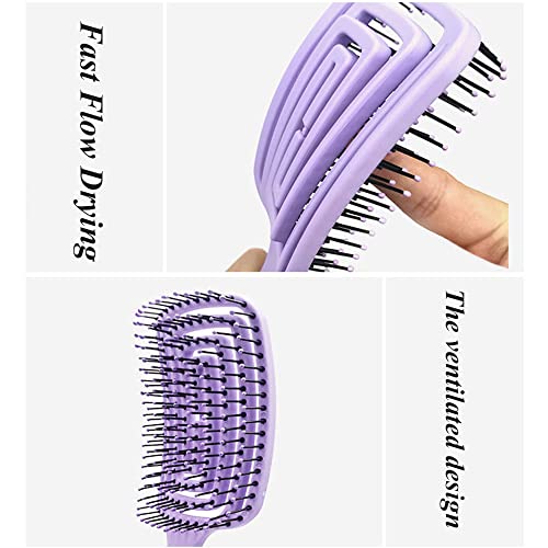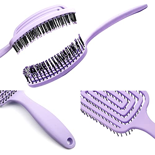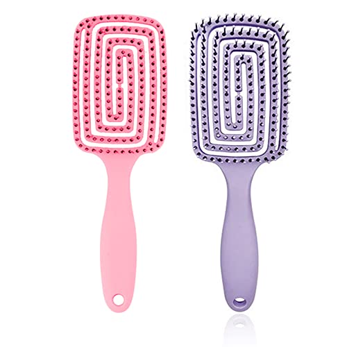NEEMAY - Hair Comb Detangle Brush Detangling Brush, Perfect Curved & Vented Design Detangler Hair Brush for Women Long, Thick, Curly and Tangled Hair Blow Dryer Brush, Pink+Purple, 2 PCS