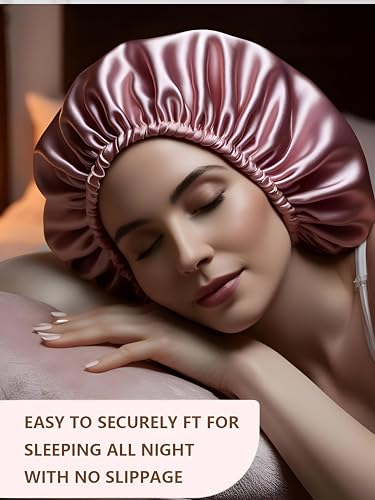 - This satin sleep bonnet is crafted from premium satin with long, ultra-smooth fibers that give a luxurious, silk-like softness. It significantly reduces friction against both hair and skin, which in turn helps to retain natural moisture, minimize breakage, prevent split ends, reduce morning tangles, and keep your skin from dryness. It’s an essential nightly shield designed to maintain the health and shine of natural and curly hair for women seeking long-term hair care benefits.