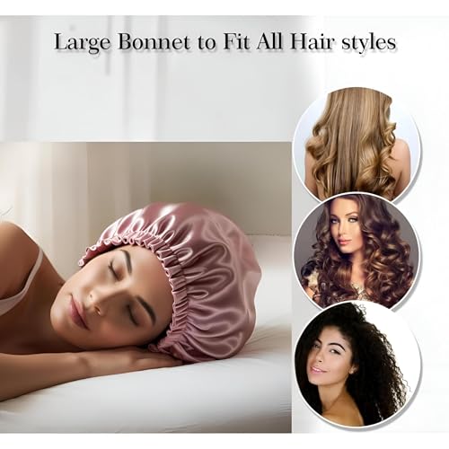 - Featuring a clever double-layer construction, this satin bonnet not only protects the hair but also keeps pillows and bedding clean when you use leave-in conditioners, oils, or treatments overnight. The reversible two-tone design allows for versatile styling, with both sides offering the same smooth satin texture that glides gently against your strands. Its colors remain vibrant without fading, and it prevents transfer or staining onto pillowcases, combining practicality with elegance in nightly