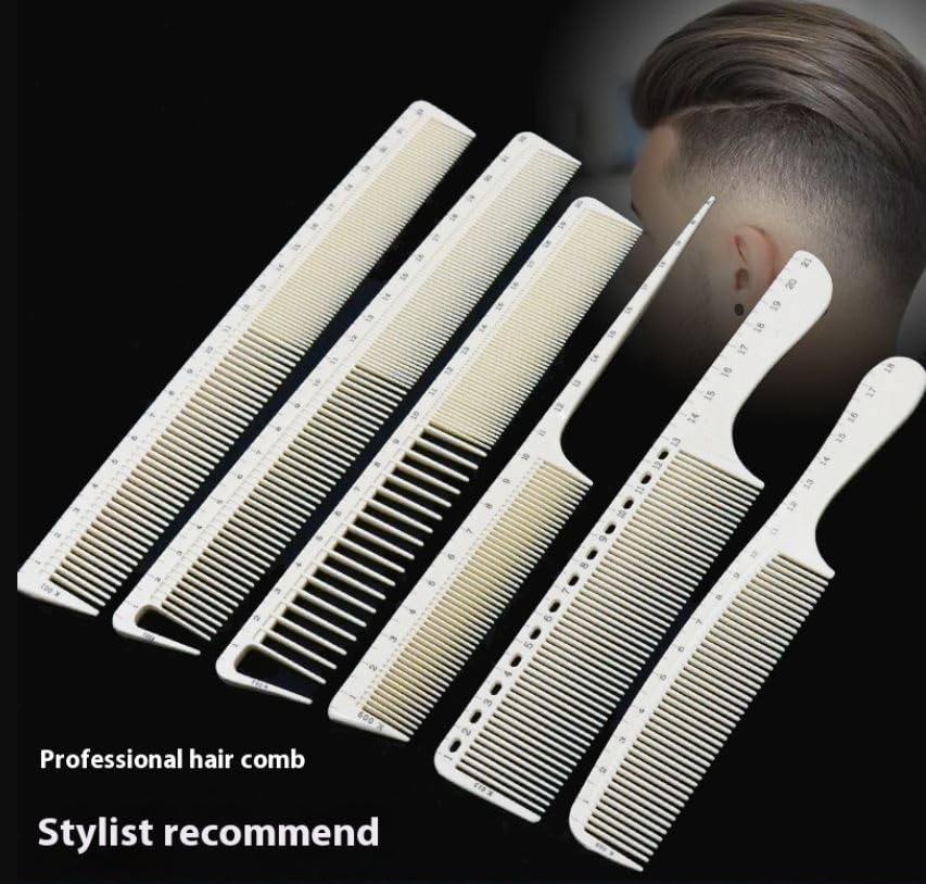 Generic - Hair Cutting Combs with Ruler Measurements, Peines de Corte con Medida Tool, Small, Tapered, Portable & Anti-Static Long Measuring Professional Combs for Salon, Barber Styling-K013-WHITE
