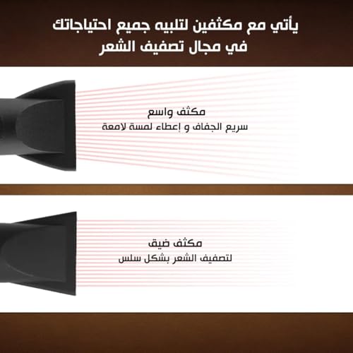 - قوة التجفيف السريع: احصلي على تجربة تجفيف مثل صالون التجميل في المنزل مع قوة 1600 واط، لتجفيف الشعر الكثيف أو الخفيف بسرعة دون إلحاق الضرر بالحرارة — مثالي لصباح مشغول قبل العمل أو للخروج.