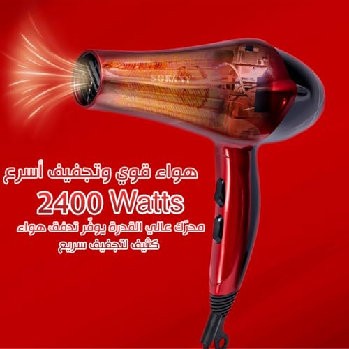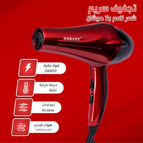 Sokany - Hair Dryer 2400W Quick Drying Cold and Hot Air 2 Speed 2 Heat High Speed Motor with Concentrator Hang Loop, SK-2211