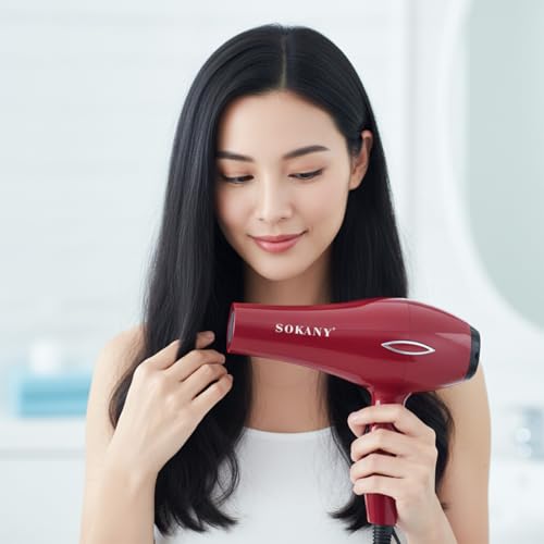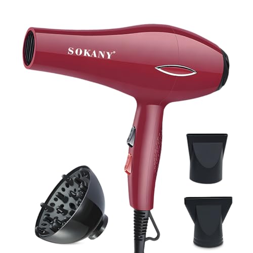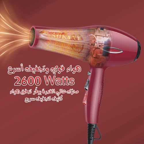 Sokany - مجفف شعر ايوني 2600 واط مع موزع وفوهة مكثف، سريع الجفاف، ايونات سالبة، إطلاق بارد، سرعتين، اعدادين للحرارة، حلقة تعليق، SK-2215