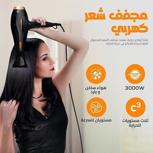 Generic - مجفف شعر 3000 وات، عناية أيونية بإعدادات متعددة للحرارة والسرعة، تجفيف سريع مع حماية من الحرارة الزائدة، للاستخدام المنزلي، موديل Hg-699 (أسود)