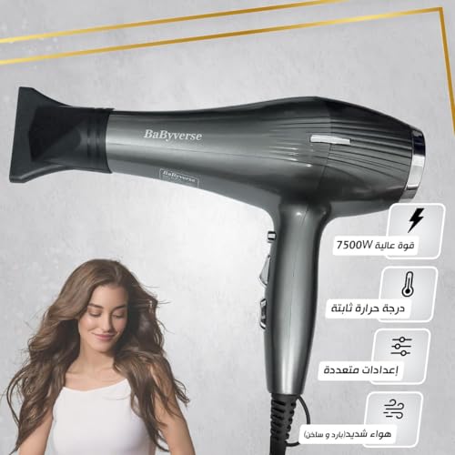 Generic - مجفف شعر أيوني 7500 وات، تجفيف سريع بالهواء الساخن والبارد مع 3 مستويات حرارة وإعدادات سرعة متعددة، تصميم خفيف الوزن وحماية من الحرارة الزائدة للاستخدام في الصالون والمنزل، BA-6634