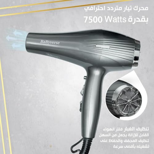 - تجفيف سريع قوي: استمتعي بصباح أسرع مع تدفق هواء أيوني 7500 واط يجفف شعرك في دقائق مع تقليل التجعد، مما يترك لمسة نهائية ناعمة تشبه صالون التجميل في المنزل أو أثناء التنقل.