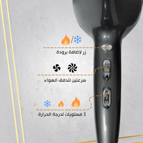 - 3 مستويات لدرجة الحرارة وتعديل متعدد السرعات: قومي بتخصيص تجربة تجفيف شعركِ مع التحكم الدقيق في إعدادات درجة الحرارة والسرعة لتناسب احتياجات التصفيف خاصتكِ.
