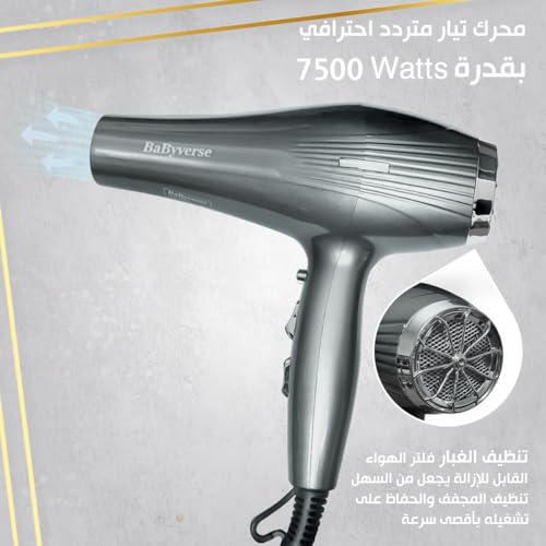 Generic - مجفف شعر بقوة 7500 وات بـ3 مستويات لدرجة الحرارة، تعديل متعدد السرعات، تجفيف سريع، هواء ساخن وبارد، عناية بالشعر بتقنية الأيونات، إعدادات متعددة، حماية من الحرارة الزائدة، BA-6634