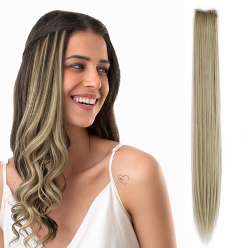 Generic - وصلات شعر - وصلة شعر 60 سم، مع مشبك واحد، وصلات شعر ملونة للنساء والفتيات، شعر صناعي مفرود للحفلات، تصميم سهل التركيب، موديل - JW220 (#108A)