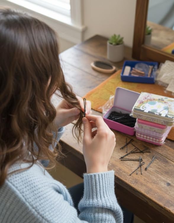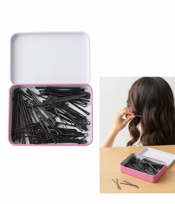 Generic - Hair Pins (Black Hairpins) Inside Metal Box with Airtight Lid for Accessories, Mixed Styles, 1 Piece