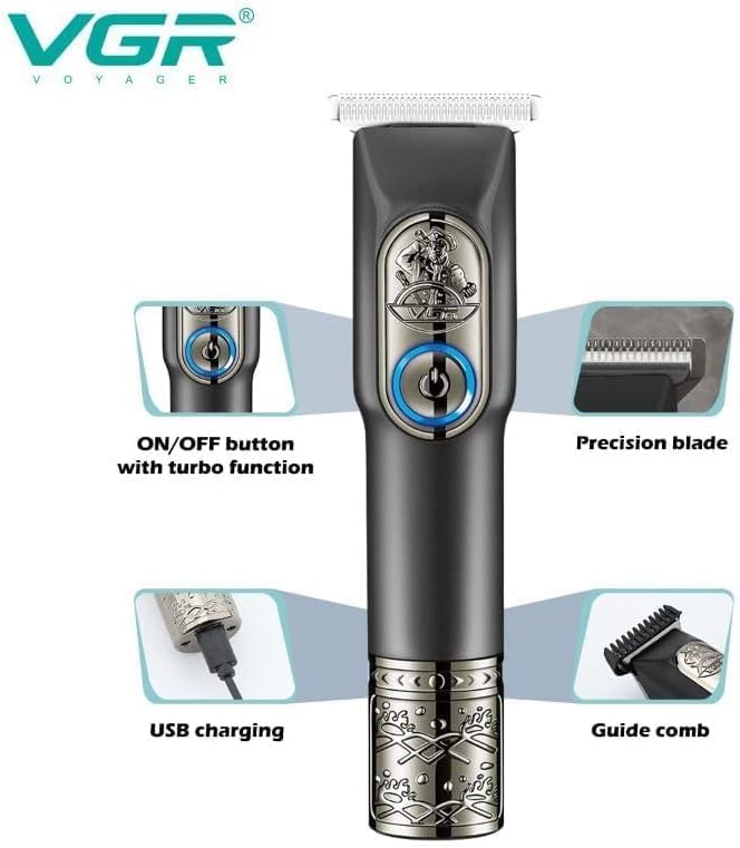Generic - Hair Shaver, Hair Clipper For Men Rechargeable Beard Trimmer With Precision Blades USB Charging 200 Min Runtime Turbo Function Low Noise Grooming Kit With 3 Comb Attachments V-963