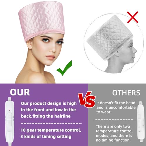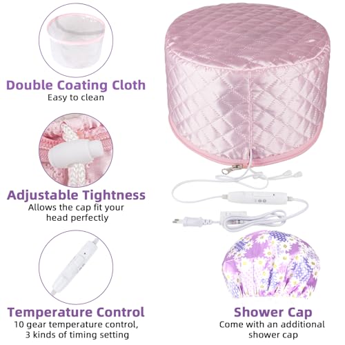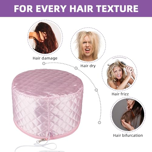 Totofac - مكواة بخار للشعر من توتوفاك، قبعة تسخين كهربائية للعناية بالشعر مع وضعين للتحكم في درجة الحرارة للشعر والمنتجعات الصحية المنزلية والمعالجة الحرارية (وردي)