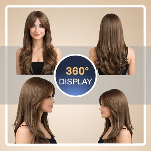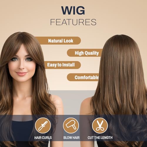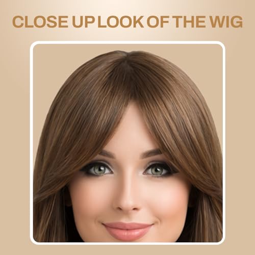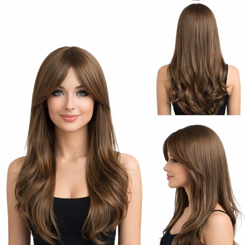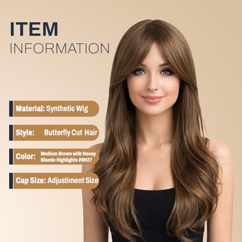 Generic - Hair Wig - Natural Looking Butterfly Cut Hair, 60 CM Length, Breathable Cap Design & Adjustable Fit, Synthetic Hair, Fixed Parting Not Adjustable, Model - JW74 (Medium Brown & Honey Blonde, #8H27)