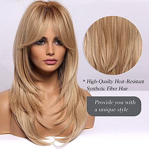 HAIRCUBE - HAIRCUBE Long Ash Blonde Wigs for Women,Layered Synthetic Hair Wig for Daily Party