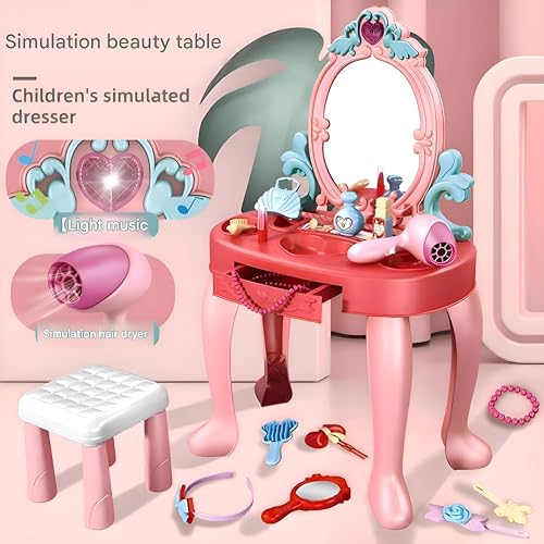 Generic - Hairstyle Set - Salon Simulation with Comfortable Child-Friendly Chair, Lights, Music, Sound Effects, Spacious Storage Compartments, and Accessories for Little Girls
