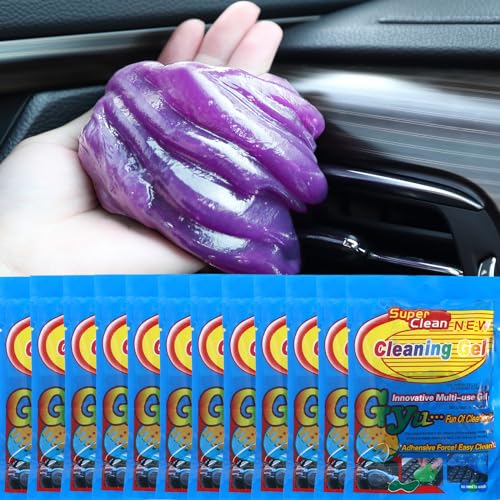 HAKPTRN - مجموعة جل تنظيف السيارة من هاكبترن، جل تنظيف شقوق السيارة ومعجون قابل لإعادة الاستخدام لتنظيف فتحات الغبار للسيارة ولوحة المفاتيح والكمبيوتر والتابلت واللابتوب وفتحات التهوية، 12 قطعة