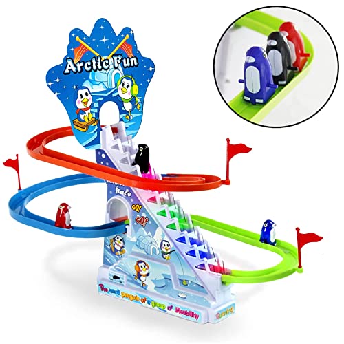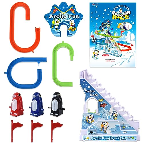 - مع مصباح فلاش بإضاءة ليد! سهلة التجميع، طيور البطريق اللطيفة، مسار ممتع، وموسيقى مبهجة