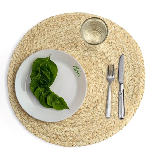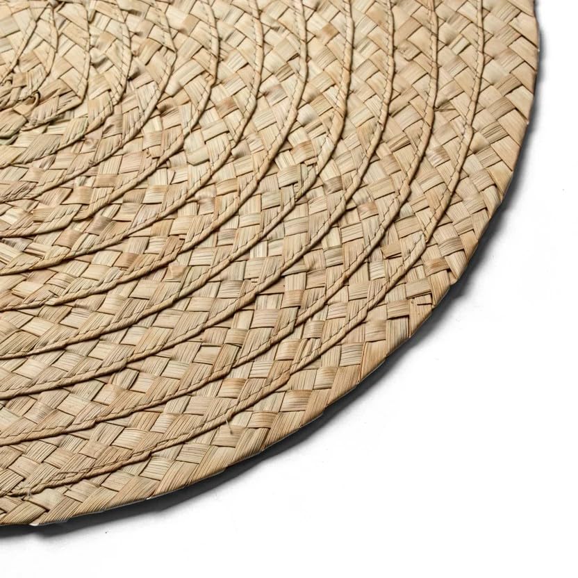 Generic - مفرش طاولة دائري منسوج طبيعي بتصميم أوراق الحلفا