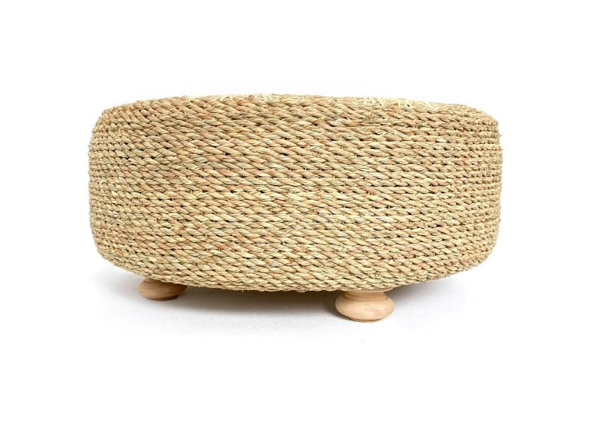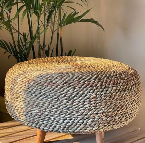 Generic - HALFA Natural Woven Seagrass Floor Pouf Ottoman, Round Boho Style Footstool with Wooden Legs