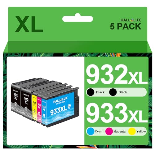 HALLOLUX - عبوة متعددة لخراطيش الطابعة 932 933 XL من هالولوكس متوافقة مع خراطيش حبر اتش بي 932، خراطيش 933 لاتش بي أوفيس جيت 7510 7612 7110 6600 6700 6100 7610 6110 (2 أسود، 1 ماجينتا، 1 سماوي، 1 أصفر)
