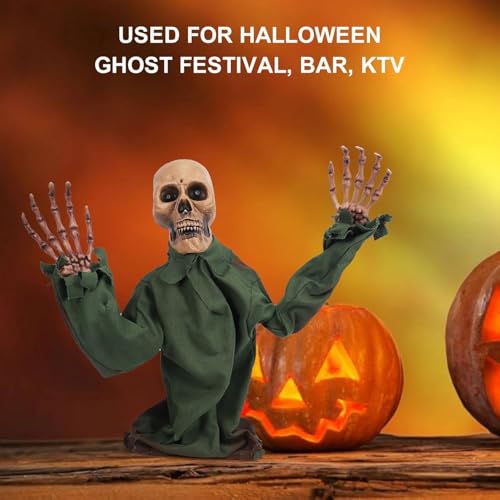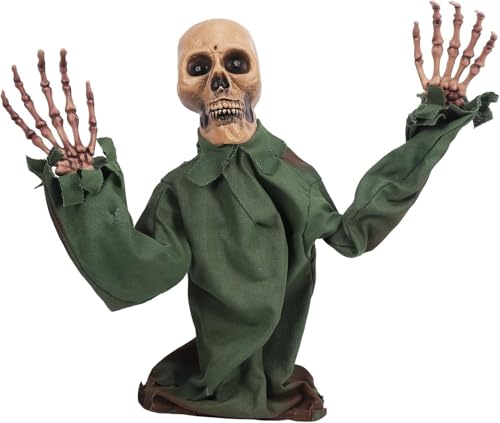 - DESIGN DETAILS: Features realistic skeletal hands and skull with a distressed green outfit for authentic haunted appearance