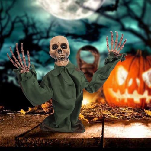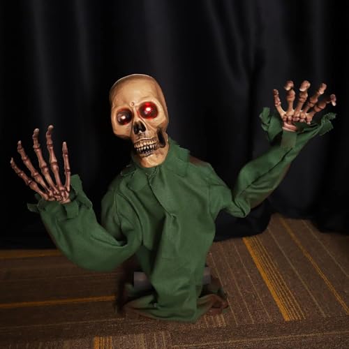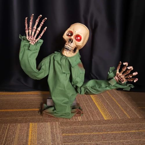 - ANIMATED FEATURES: Battery-operated zombie figure with light effects and spine-chilling sound effects for an immersive haunted experience