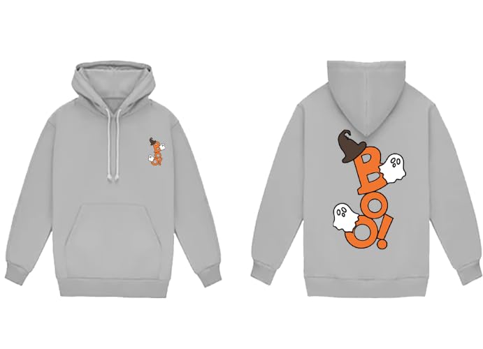 Generic - Halloween Ghost BOO Graphic Pullover Hoodie, Grey Sweatshirt, Front Pocket(XL)