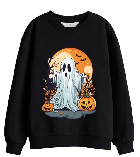 Generic - Halloween Ghost Pumpkin Graphic Black Sweatshirt Spooky Design, Casual Pullover Size (2XL)