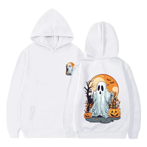 Generic - Halloween Ghost Pumpkin Moon Print Pullover Hoodie, White(6-9Y)