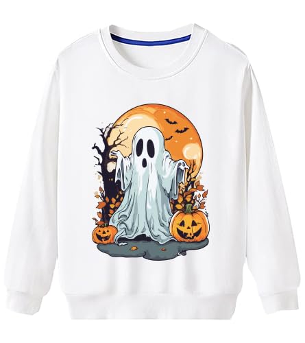 Generic - Halloween Ghost White Sweatshirt Cotton Blend, Long Sleeve Graphic Print with Pumpkins and Moon Size (3-6Y)
