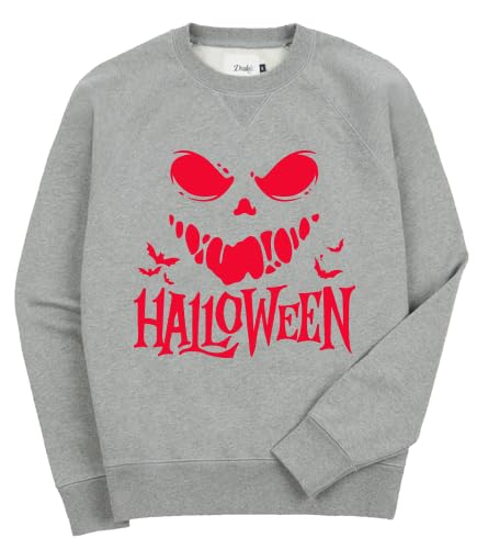 Generic - Halloween Graphic Sweatshirt, Grey Cotton Blend Crewneck, Spooky Face Print, Casual Pullover for Holiday Season Size (L)