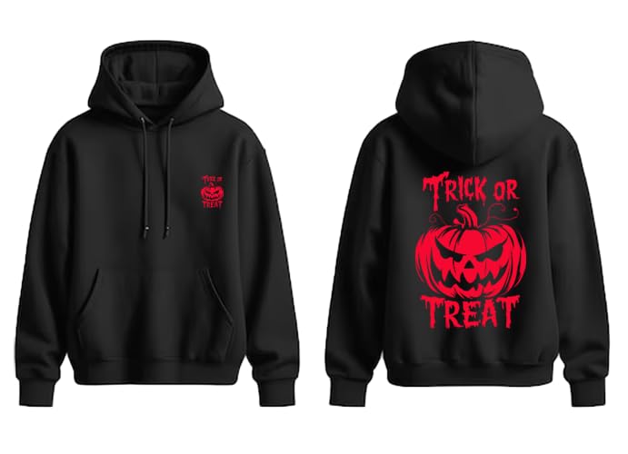 Generic - Halloween Hoodie with Trick or Treat Pumpkin Design, Black Pullover Sweatshirt with Red Graphics(S)