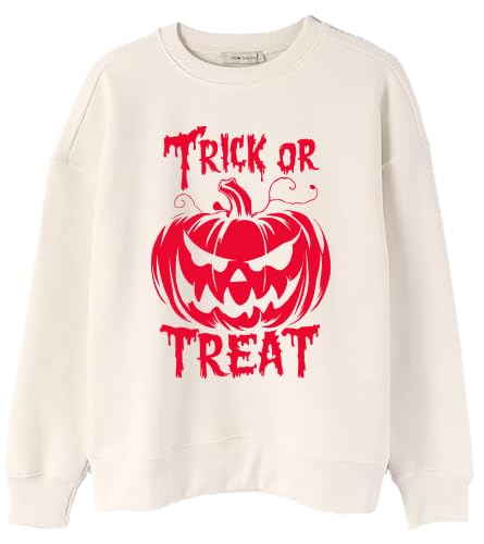 Generic - سويت شيرت هالوين يقطين بيج مزيج من القطن، تصميم خدعة ام حلوى، طباعة مخيف جاك اولانتر، بلوفر كاجوال مقاس (M)