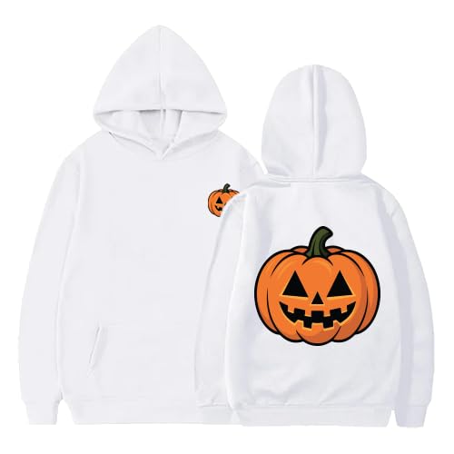 Generic - Halloween Pumpkin Face Hoodie, White Cotton Blend Sweatshirt, Unisex Pullover with Jack O'Lantern Print, Holiday Theme size (s).