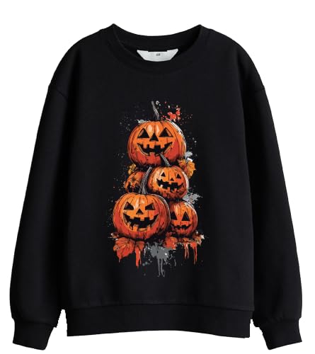 Generic - Halloween Pumpkin Graphic Black Sweatshirt, Cotton Blend, Long Sleeve Pullover Size (9-12Y)