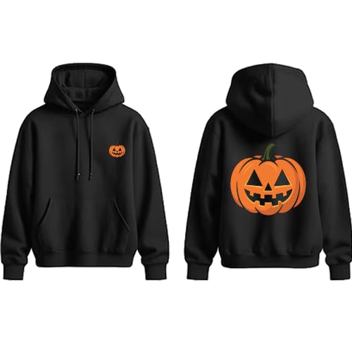 Generic - Halloween Pumpkin Hoodie, Black Cotton Sweatshirt with Front Pocket, Jack O'Lantern Print on Back, Unisex Pullover for Halloween Theme size(S).
