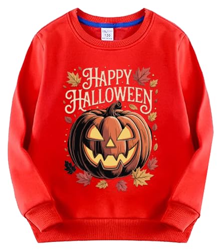 Generic - سويت شيرت احمر للهالوين، بلوفر قطني بطباعة اليقطين جاك اولانترن، مقاس مناسب لعطلة الخريف (6-9 سنوات)