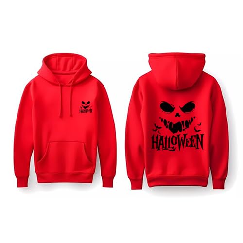 Generic - بلوفر بغطاء للرأس مطبوع عليه شبح مخيف للهالوين، سويت شيرت قطني احمر مع جيب امامي (مقاس M)