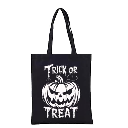 Generic - Halloween Trick or Treat Tote Bag, Black Canvas with White Pumpkin Design