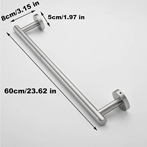 Hallyware - Round Base Single Towel Bar SUS 304 Stainless Steel 60 cm/24 inches Towel Rails Rack for Kitchen and Bathroom Wall Mounted,Brushed Silver